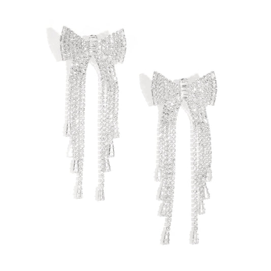 Rhinestone Bow Sparkly Festive Tassle Earrings