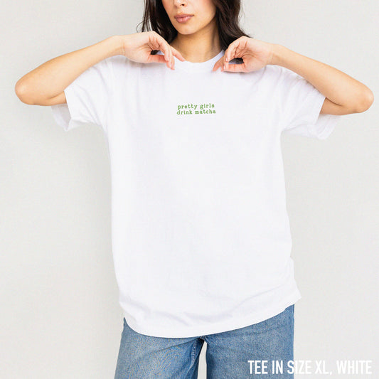 Pretty Girls Drink Matcha Embroidered Classic T-Shirt