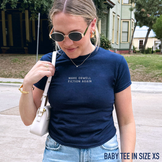 Make Orwell Fiction Again Embroidered Baby Tee