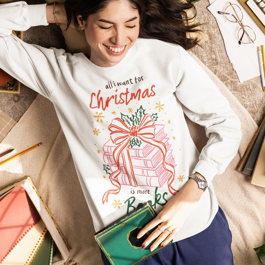 All I Want For Christmas More Books Bookish Christmas Sweatshirt