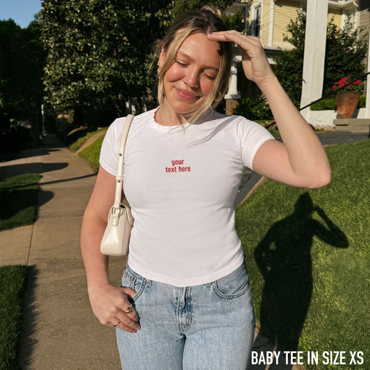 CUSTOM Your Text Serifed Embroidered Baby Tee