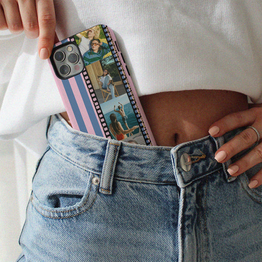 CUSTOM PHOTO Sweet Lines Aesthetic iPhone Case (Pink & Blue)