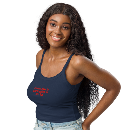 Kissing Girls Going to Hell Rib Embroidered Tank Top
