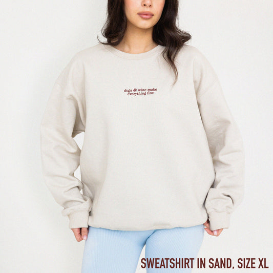 Dogs & Wine Make Everything Fine Embroidered Sweatshirt