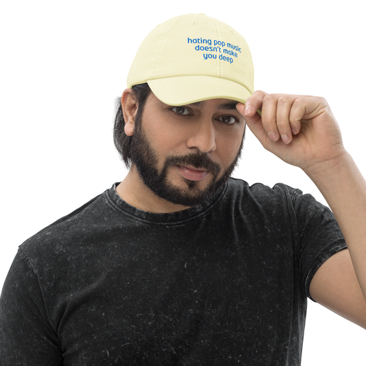 Hating Pop Music Doesn't Make You Deep Embroidered Pastel Baseball Cap