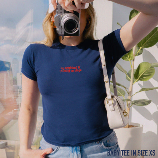 My Boyfriend is Literally on Stage Embroidered Baby Tee