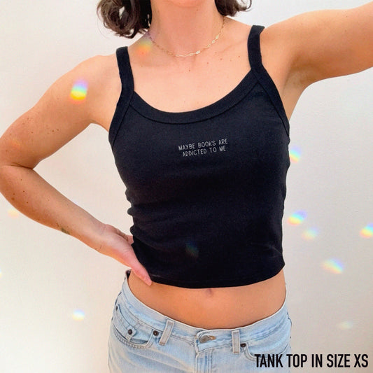 Maybe Books Are Addicted to Me Rib Embroidered Tank Top