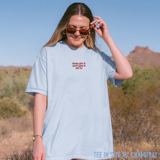 Kissing Girls Going to Hell Embroidered Classic T-Shirt