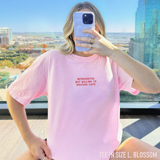 Introverted But Willing To Discuss Cats Embroidered Classic T-Shirt