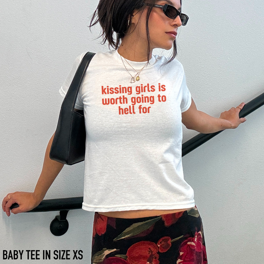 Kissing Girls Going to Hell Embroidered Baby Tee