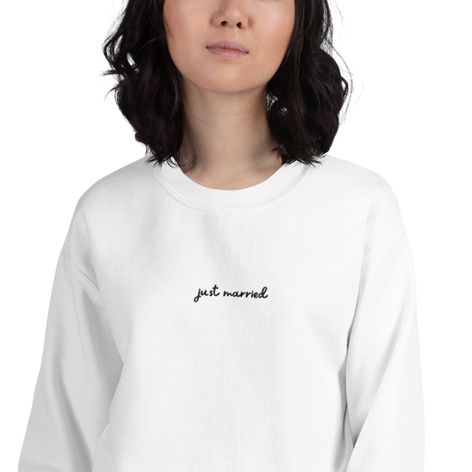 Just Married Newlywed Embroidered Sweatshirt