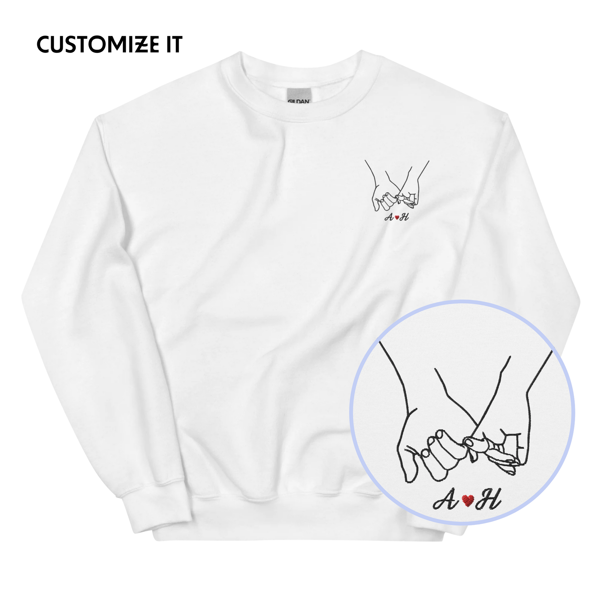 CUSTOM Couple Initials Embroidered Sweatshirt - Pinky Promise