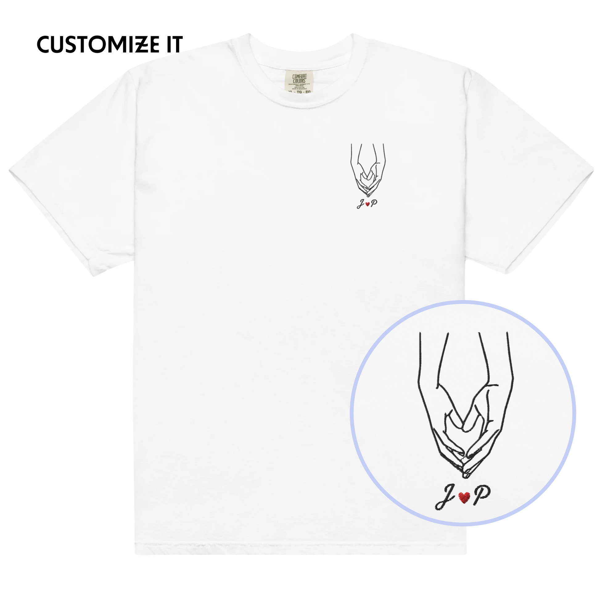 CUSTOM Couple Initials Embroidered T-Shirt - Heart Hands