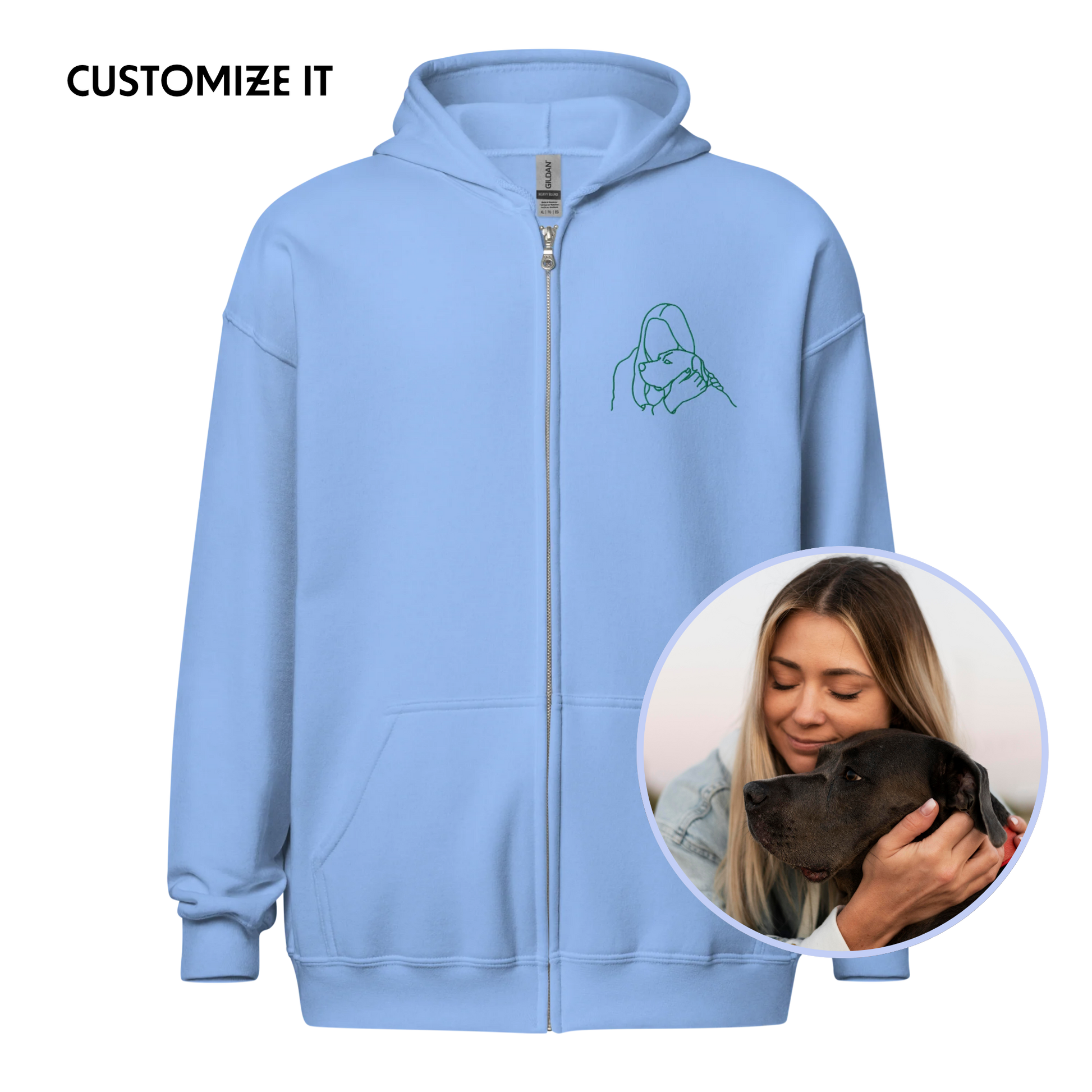 CUSTOM Embroidered Photo Portrait Zip-Up Hoodie