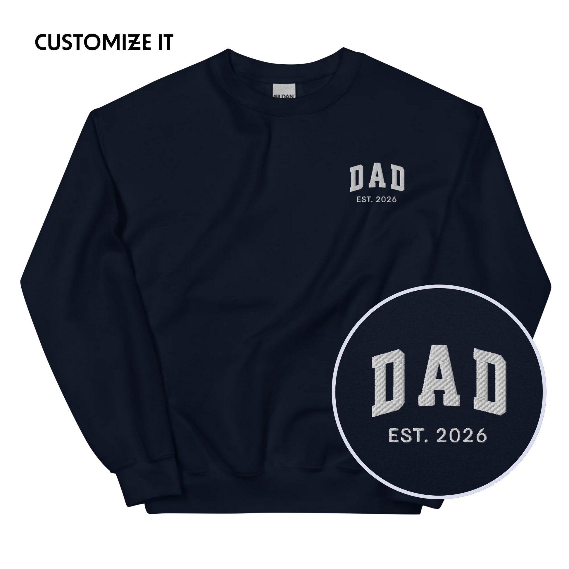 The CUSTOM YEAR Dad Embroidered Sweatshirt is the ultimate way to celebrate the year Dad officially became Dad. Whether it's the birth year of his first child or a special milestone, this sweatshirt lets him wear his dad status with pride. With a comfy fit and personalized touch, it’s the perfect gift for any dad who’s earned the title and wants to show it off in style!