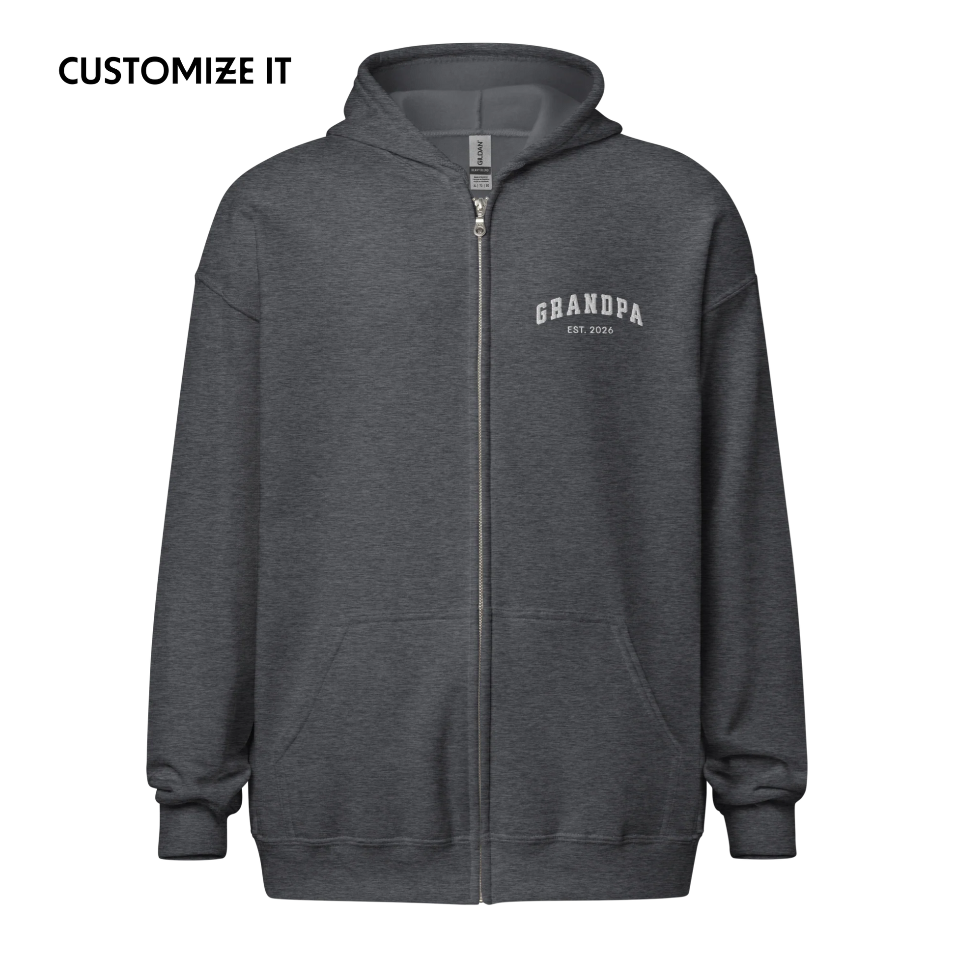 CUSTOM YEAR Grandpa To Be Embroidered Zip-Up Hoodie