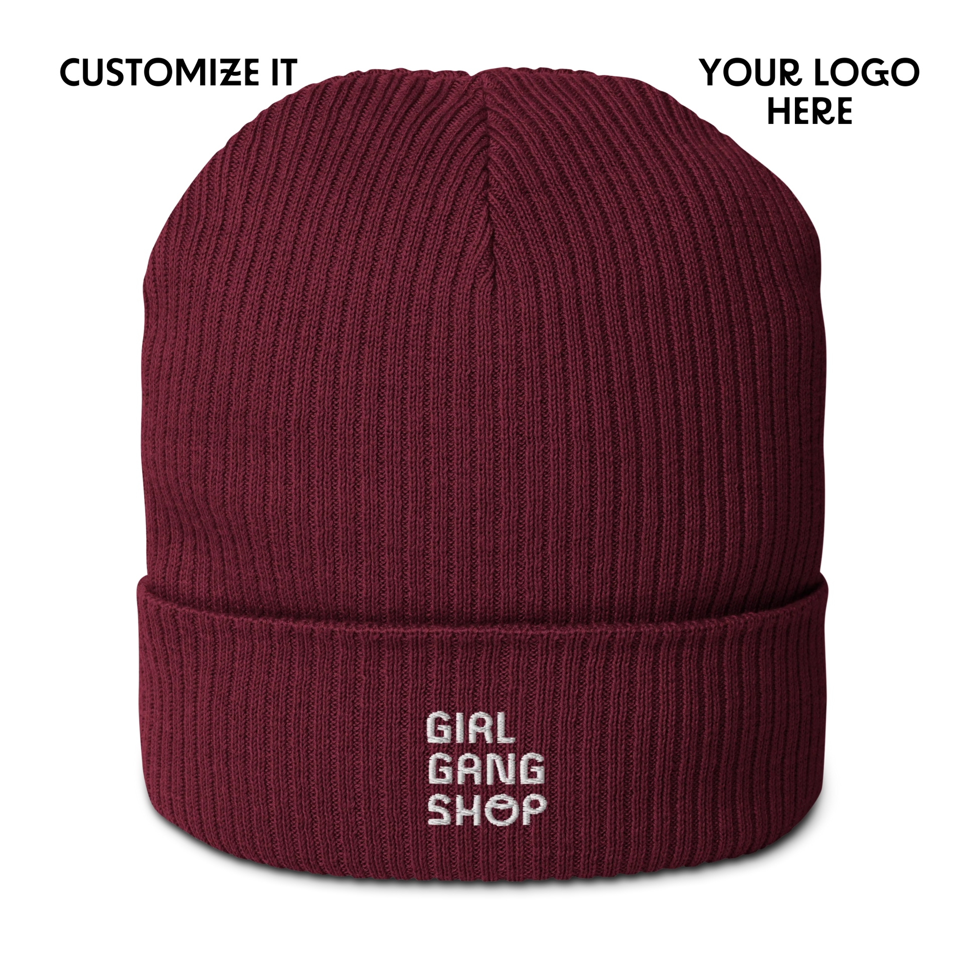 CUSTOM YOUR LOGO Embroidered Organic Ribbed Beanie