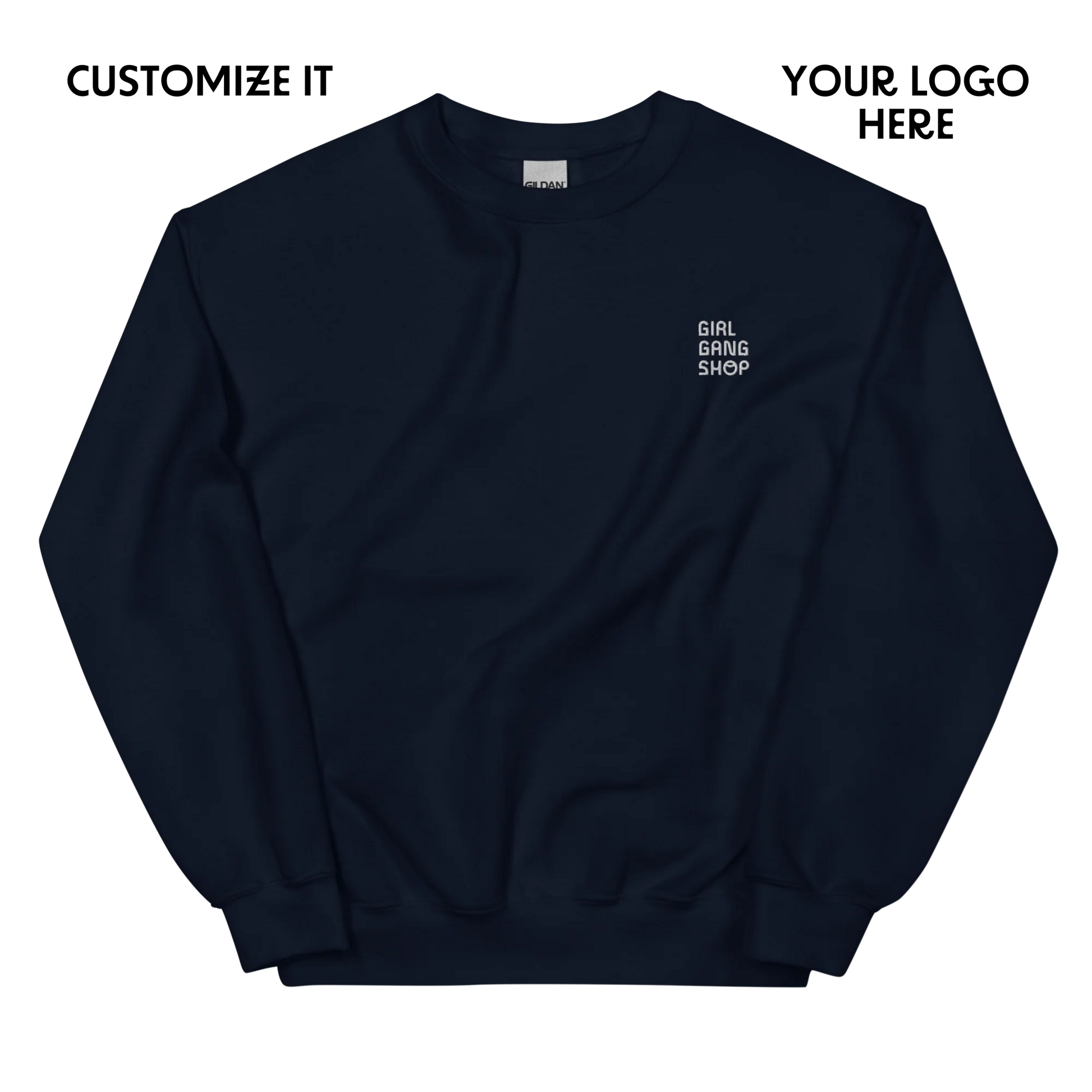The CUSTOM YOUR LOGO Embroidered Sweatshirt is the perfect mix of professional and effortlessly cool — a stylish way to represent your brand wherever you go. Your logo or design is expertly embroidered for a clean, durable finish that won’t fade or peel, giving your business the premium touch it deserves.