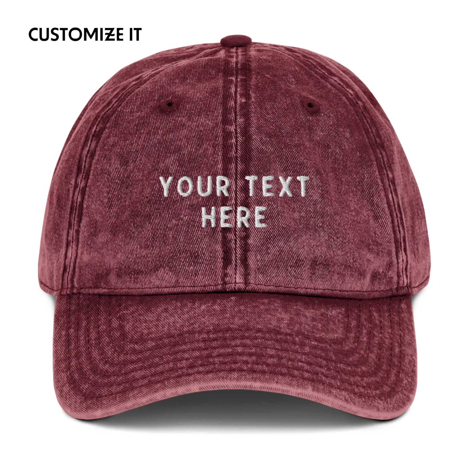 Introducing the CUSTOM Your Text Embroidered Vintage Cap – the perfect personalized accessory that not only adds flair to your style but also makes a fantastic gift for any occasion. Whether you choose to embroider their name, a special date, a meaningful quote, or an inside joke, this hat is a thoughtful and unique way to show you care. Give the gift of personalized style and watch their face light up with joy.