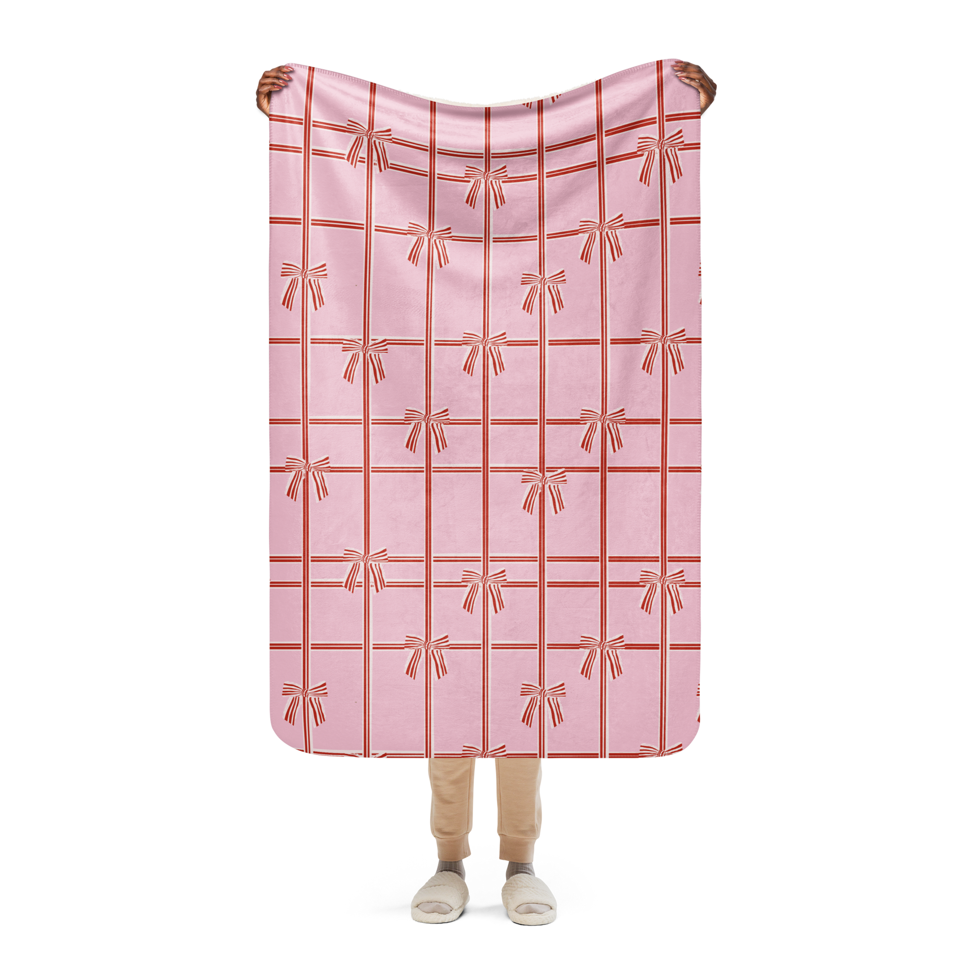 Jolly Bows Pink Christmas Sherpa Blanket