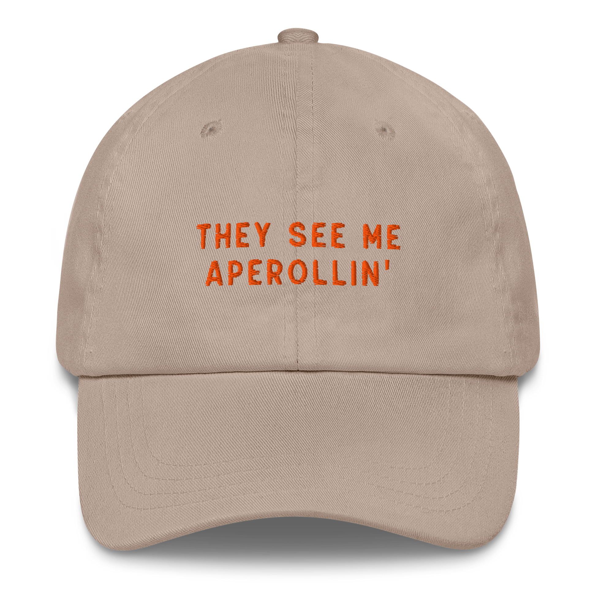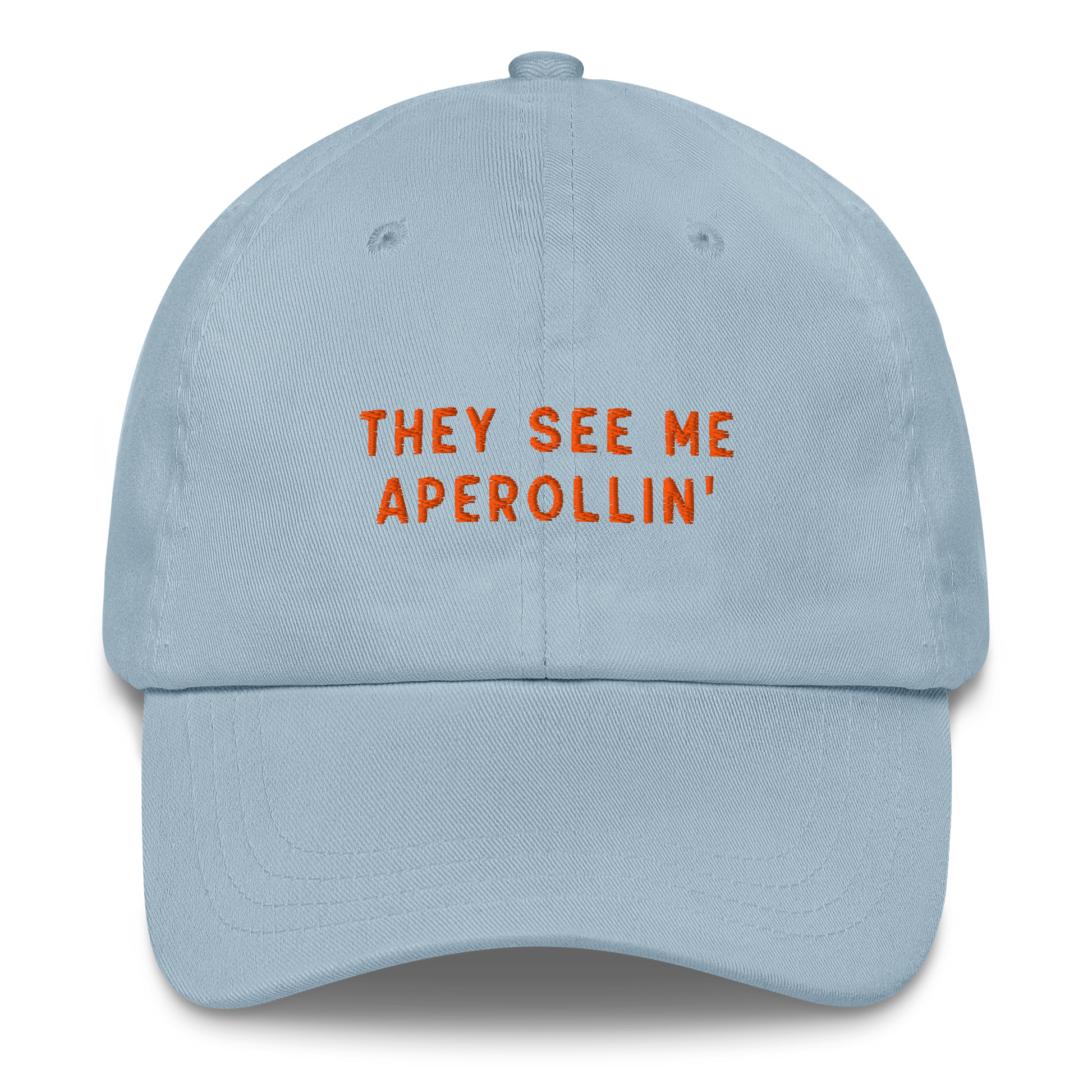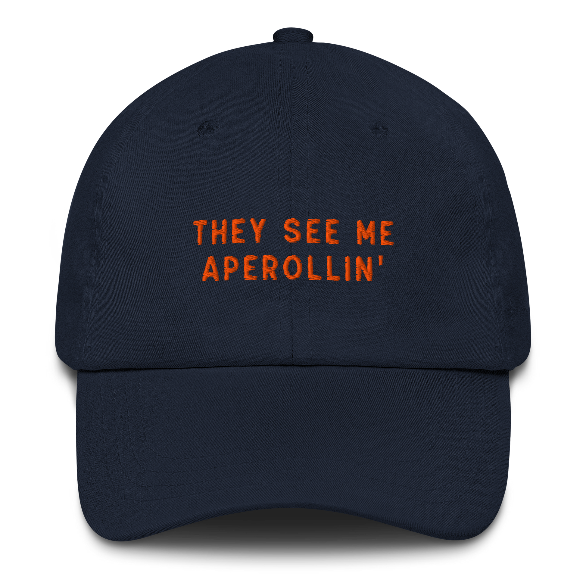 Introducing the They See Me Aperollin' Cocktail Embroidered Dad Hat – a stylish and vibrant accessory inspired by the classic Italian cocktail. Whether you're enjoying a sunny afternoon on a terrace, sipping cocktails by the pool, or simply out and about, this hat is the perfect accessory for showcasing your love for this refreshing drink. Wear it proudly and let the world know that you're a fan of the Aperol Spritz lifestyle.